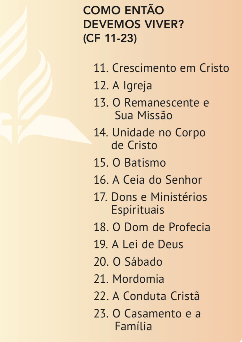 É interessante notar que mais de um terço das nossas Crenças Fundamentais dizem respeito a como devemos proceder em nossa vida, à luz da narrativa bíblica.