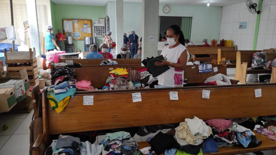 A Igreja Adventista de Fátima tem servido de espaço para coleta de roupas, alimentos e outros donativos, além de cozinha para o preparo de refeições. Foto: Jessé Boaventura