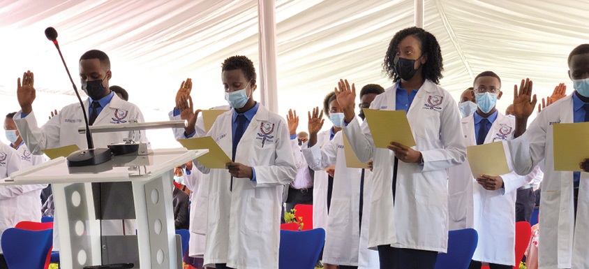 Os estudantes leram um compromisso, no qual se comprometeram a dedicar a vida a imitar o ministério de Cristo, servindo à comunidade. Depois do juramento, Patrick Ndimubanzi, diretor-geral de desenvolvimento de recursos humanos do governo de Ruanda, dirigiu-se à classe. Ele incentivou os estudantes a ser pacientes e humildes. “Para ser um bom médico, é preciso ser um bom ser humano”, aconselhou.