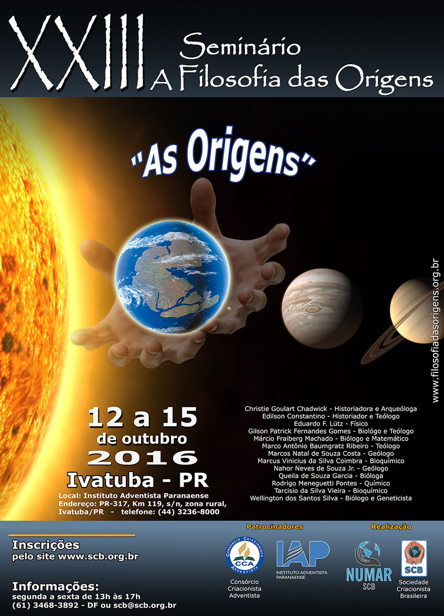 Cartaz Evento criacionista - jpegEstão abertas as inscrições para o 23º Seminário “A Filosofia das Origens”, que será realizado no Instituto Adventista Paranaense (IAP), em Ivatuba (PR), entre os dias 12 e 15 de outubro. O evento é voltado para professores, estudantes, pesquisadores, teólogos, profissionais liberais, entre outros interessados no tema.