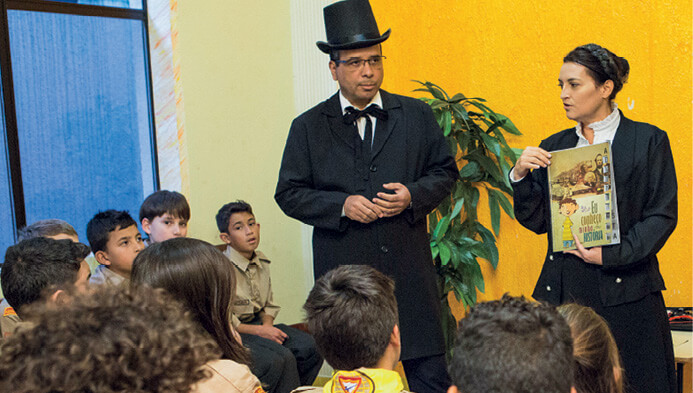 Há dez anos o curso “Eu Conheço Minha História” ajuda a reforçar a identidade da igreja, ensina sobre o surgimento e o propósito da mensagem adventista e inspira meninos e meninas ao compromisso com Cristo. As aulas são ministradas por professores voluntários, que precisam ser devidamente treinados. Orientados por uma apostila e vídeos disponíveis no Portal Adventista (para acessar os materiais, clique aqui), esses instrutores usam a criatividade para contar a história com dinamismo. Isso inclui dramatizar os relatos trajados com as roupas da época do início do adventismo e utilizar até a mascote Guigo.