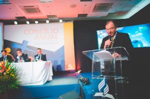 Pastor Hélio Carnassale, líder sul-americano do departamento de Assuntos Públicos e Liberdade Religiosa, apresenta documento sobre a visão adventista em relação ao partidarismo político e manifestações públicas. Crédito: Naasom Azevedo