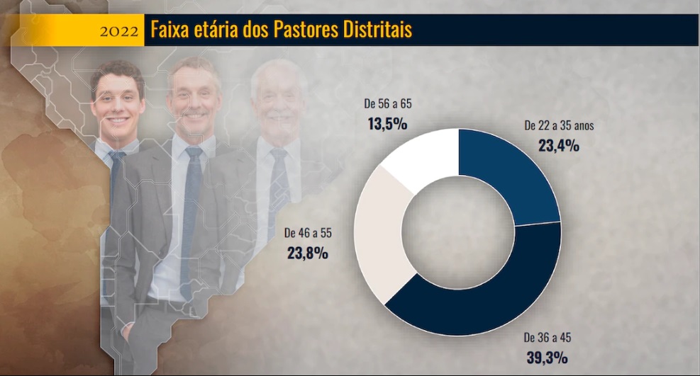 Apresentado pelo secretário executivo da Divisão Sul-Americana, Edward Heidinger, durante a Comissão Diretiva Plenária, em Brasília (DF), o levantamento revelou que eles são predominantemente jovens, já que 62,7% tem entre 22 e 45 anos de idade. Por sua vez, os pastores na faixa etária dos 46 aos 65 anos representam 37,3% do total.