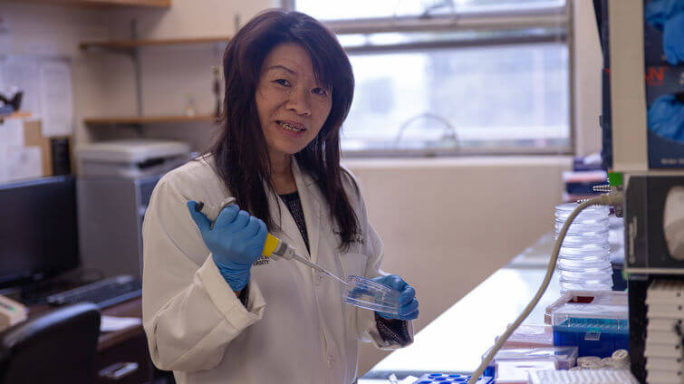 Hongyu Qiu explora o papel de uma nova molécula na prevenção de doenças das artérias coronárias. Foto: Loma Linda University Health