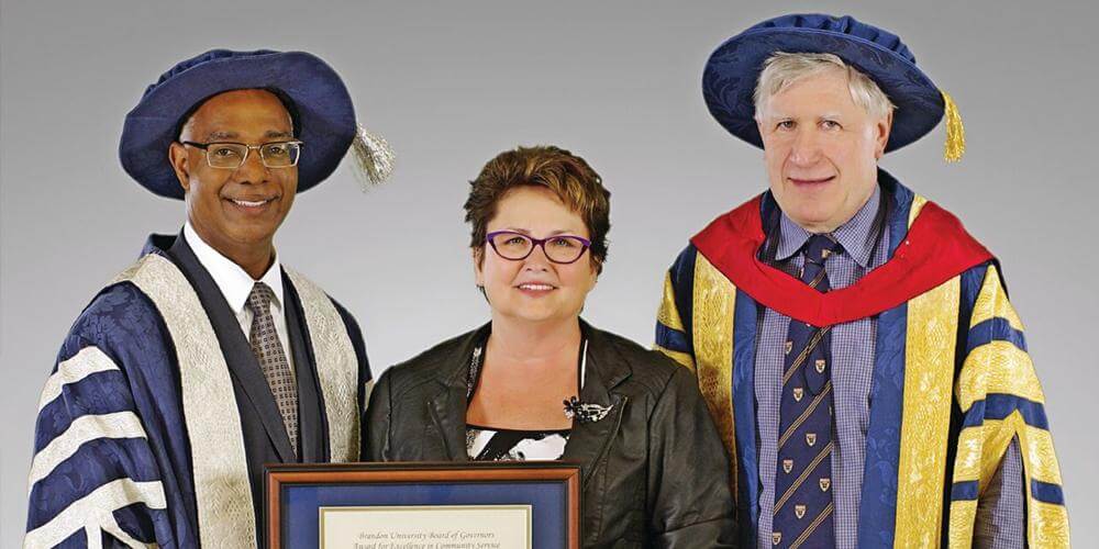 Judy Ramsay (ao centro) recebeu da Universidade de Brandon, no Canadá, o Prêmio de Excelência em Serviço Comunitário. A funcionária da instituição foi homenageada pela participação em diversos projetos da Igreja Adventista. Por mais de 20 anos, ela liderou vários departamentos da igreja local e participou de inúmeros projetos desenvolvidos pela organização Maranatha Volunteers International, incluindo a construção de igrejas na República Dominicana, no Zimbábue, no Chile, no Peru, no México, na Nicarágua e no Panamá, de um orfanato em El Salvador e de centros educacionais e salas de aula na Índia, no Equador e em Honduras. [Equipe RA, da Redação / Com informações de Brian Bell, na Adventist Review]