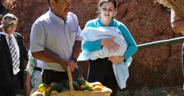 O ponto alto da programação é quando as famílias da localidade, de uma forma simbólica, levam ao altar o melhor daquilo que produzem.  Em silêncio e emocionada, a multidão testemunha a atitude de gratidão e fidelidade a Deus. “Nós fazemos como no passado, entregamos a primeira produção a Deus, o que há de melhor. Foi a maneira que encontramos para agradecer e Ele por tantas bênçãos que derramou ao longo do ano”, explica um dos pioneiros, João Valdemar Zukowski.
