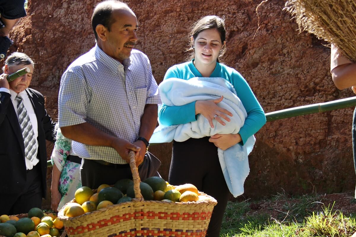 O ponto alto da programação é quando as famílias da localidade, de uma forma simbólica, levam ao altar o melhor daquilo que produzem.  Em silêncio e emocionada, a multidão testemunha a atitude de gratidão e fidelidade a Deus. “Nós fazemos como no passado, entregamos a primeira produção a Deus, o que há de melhor. Foi a maneira que encontramos para agradecer e Ele por tantas bênçãos que derramou ao longo do ano”, explica um dos pioneiros, João Valdemar Zukowski.
