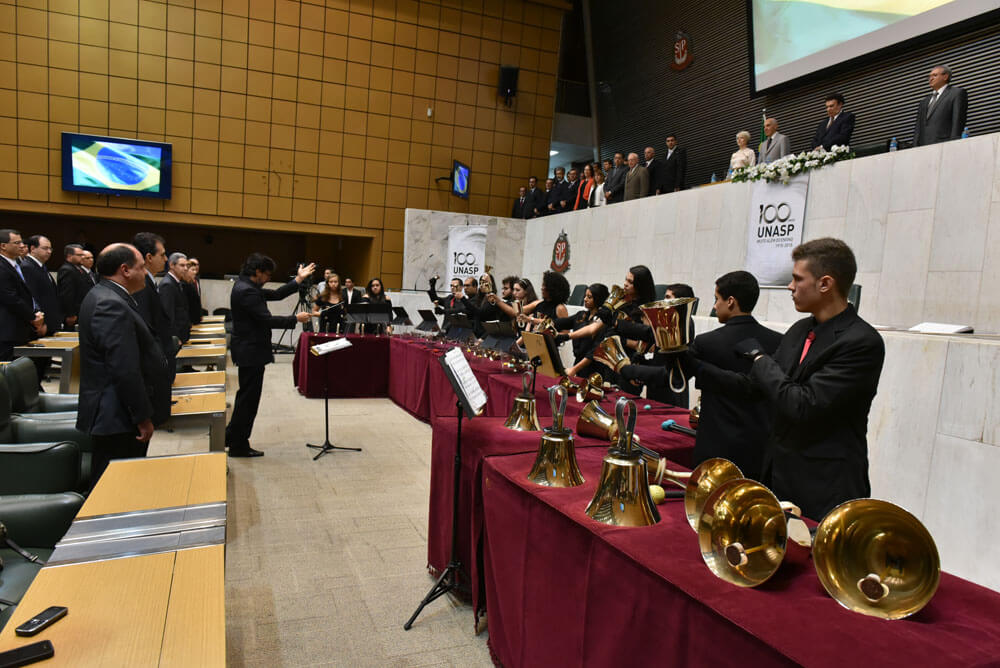 No dia 17 de agosto, a Assembleia Legislativa do Estado de São Paulo abriu espaço para sessão solene em homenagem ao Centro Universitário Adventista de São Paulo (Unasp) pelos seus 100 anos de dedicação e serviço à sociedade. Ao longo de sua trajetória, a instituição já realizou diversas parcerias com o poder público. Desde 2001, por exemplo, o curso de Nutrição contribui com a rede de restaurantes Bom Prato, que fornece refeições diárias a um preço mínimo para a população de baixa renda. Além disso, através de uma parceria com a Secretaria Municipal de Saúde, o Unasp foi responsável pela implantação e administração do Programa Saúde da Família (PSF) no bairro Capão Redondo. Durante a cerimônia que lembrou algumas dessas ações desenvolvidas pela instituição, houve apresentações dos corais formados por alunos e professores do Unasp. [Informações e fotos: Ana Paula Ramos e Lucas Rocha]