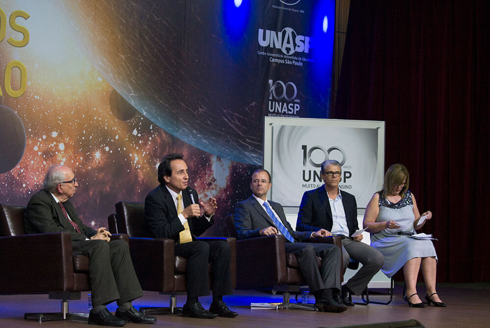 I Encontro de Criacionismo do Unasp, campus São Paulo, realizado no último final de semana, contou com a participação de importantes pesquisadores brasileiros. Entre eles, o pós-doutor em Espectromia de Massas e diretor executivo da Sociedade Brasileira do Design Inteligente, Marcos Eberlin, e o presidente da Sociedade Criacionista Brasileira, dr. Ruy Carlos de Camargo Vieira. [Foto: Márcio Tonetti]