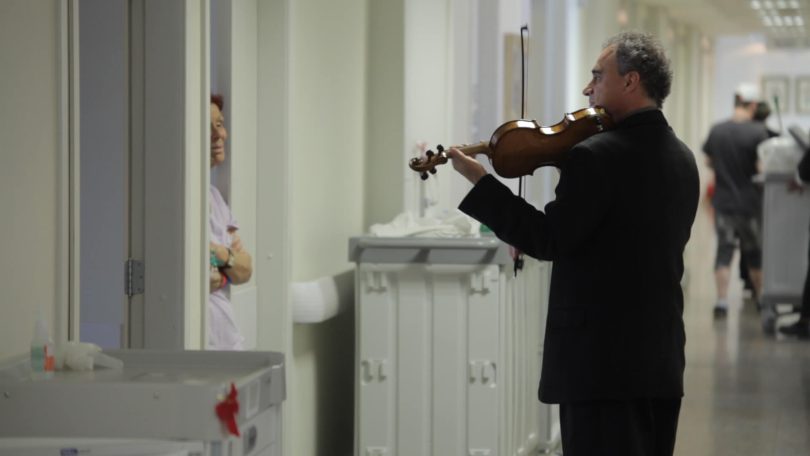 Violinista adventista toca semanalmente para pacientes em hospitais.