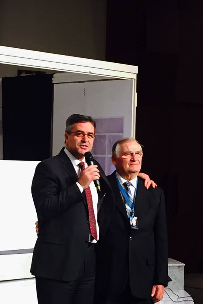 Pastor Erton Köhler homenageia o ex-presidente da Divisão Sul-Americana, pastor João Wolff. Foto: Marcos De Benedicto