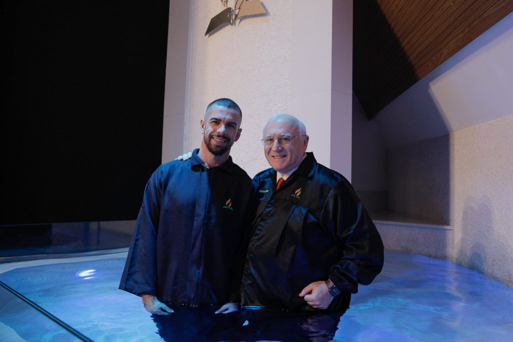 O professor de inglês Diego Soares teve contato com a igreja pela internet e se matriculou na Escola Bíblica Digital. Como resultado, ele foi batizado no dia 17 de maio pelo pastor Bruno Raso, vice-presidente da igreja na América do Sul. Foto: Gustavo Leighton
