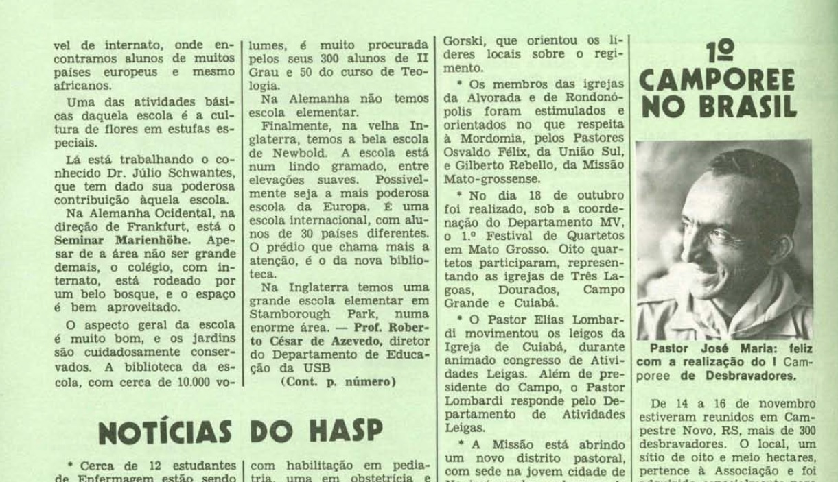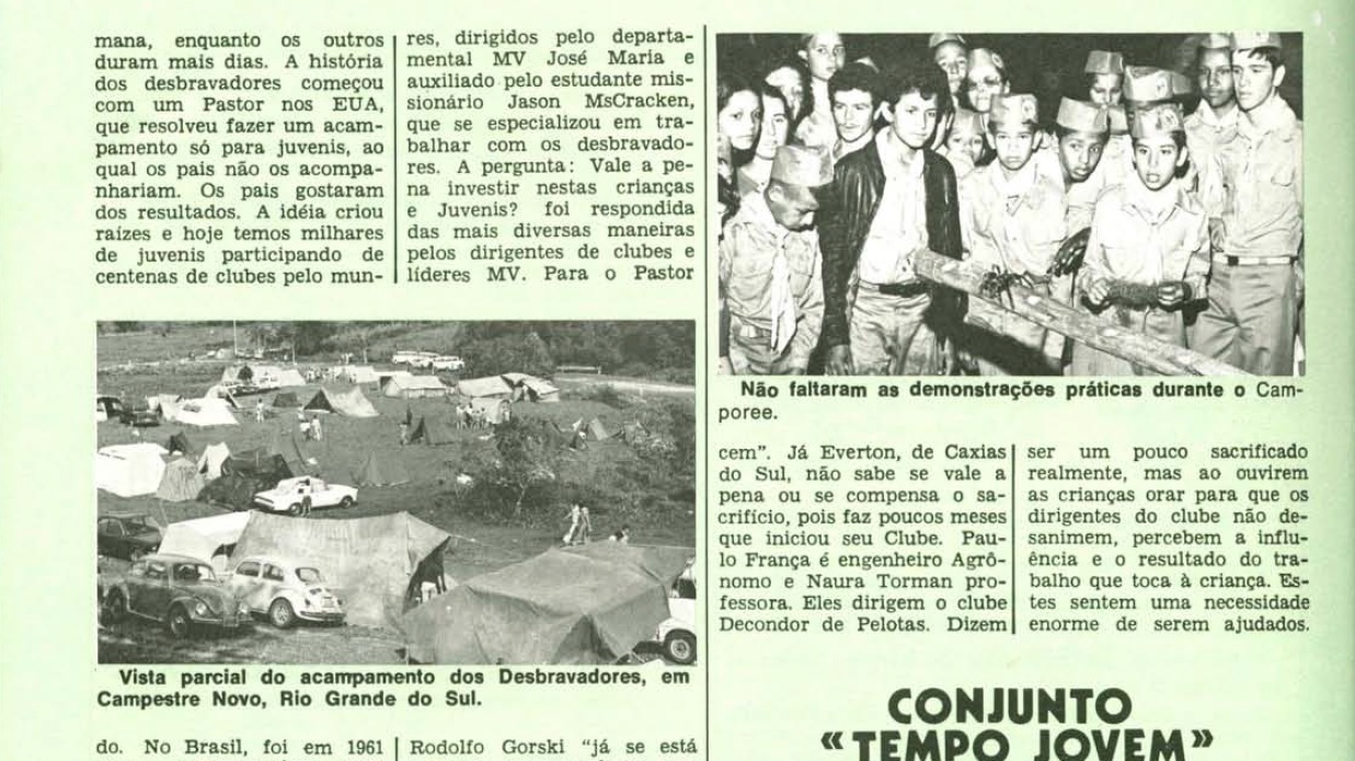 RECORTES DA REPORTAGEM SOBRE O “1º CAMPOREE NO BRASIL” (REVISTA ADVENTISTA, DEZ. 1975, P. 16-18) / FONTE: ACERVO VIRTUAL