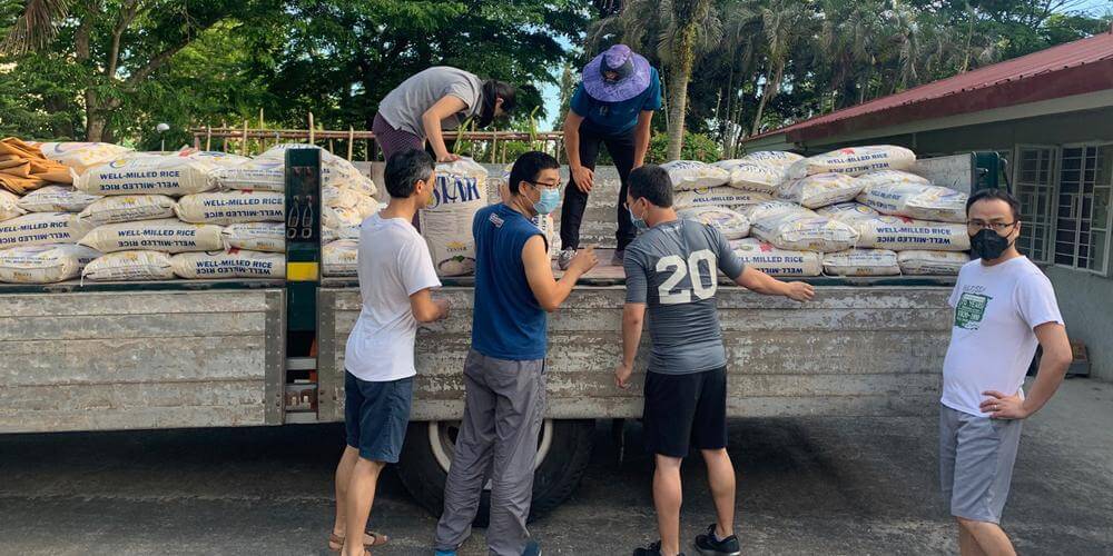 Doações de arroz recebidas pelo instituto de ensino superior das Filipinas beneficia famílias mais vulneráveis da comunidade durante a quarentena. Foto: AIIAS