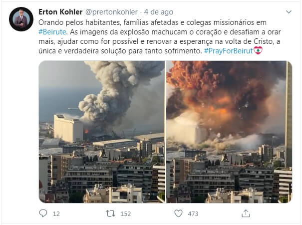 A tragédia desta semana tende a agravar a situação do país, que já estava mergulhado em uma crise política e econômica que se intensificou nos últimos meses com a pandemia. “A explosão deu mais um golpe em nossas instituições aqui no Líbano”, ressaltou o pastor McEdward. “Por favor, ore pela igreja nesse país, pois ela busca ser uma bênção e trazer boas notícias para a nação”, apelou McEdward.