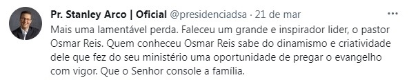 “Meu pai foi um servo dedicado, verdadeiro e comprometido. Ele se preocupava com as pessoas”, destacou outro filho, o psicólogo Osmar Reis Jr.