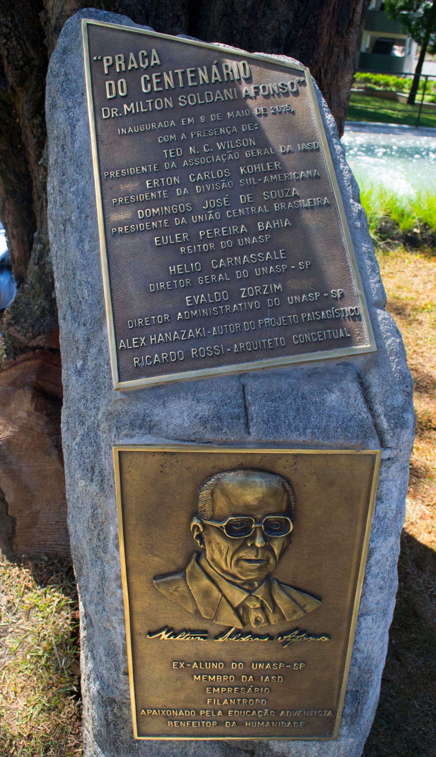 O ex-aluno, que veio prestigiar o culto de gratidão pelos cem anos, foi homenageado pela instituição com a inauguração de uma praça que leva o nome dele e o identifica como “apaixonado pela educação adventista” e “benfeitor da humanidade”. Localizada na parte central do campus São Paulo, em frente ao templo, a “Praça do Centenário Dr. Milton Soldani Afonso” será um ponto de encontro com a filosofia adventista. Cada detalhe da estrutura aponta para Jesus, o “mestre dos mestres”, e para ensinamentos bíblicos fundamentais (a exemplo do sábado como memorial da criação), o que reforça a mensagem de que o Unasp entra em uma nova fase de sua trajetória orientado pelos mesmos princípios que o conduziram até aqui. [Reportagem e fotos: Márcio Tonetti Tonetti, equipe RA]