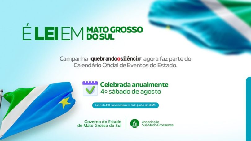 A campanha Quebrando o Silêncio foi oficializada no calendário do Mato Grosso do Sul por meio da Lei Estadual no 6.418/2025, que estabelece o quarto sábado de agosto como seu dia oficial. Promovida desde 2002 pela Igreja Adventista em oito países da América do Sul, a iniciativa de 2025 terá como foco a violência digital, abordando riscos como o cyberbullying e a exposição indevida. A oficialização tem como objetivo fortalecer as ações de combate, mobilizar a sociedade e ampliar as políticas públicas, com a expectativa de aumentar o engajamento municipal e garantir maior proteção às vítimas em todo o estado.