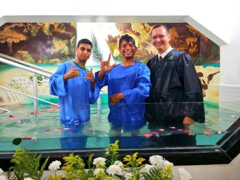 Na data em que é lembrado o Dia Nacional dos Surdos, 26 de setembro, a Igreja Adventista Central de Porto Velho (RO) celebrou o batismo de dois jovens com deficiência auditiva. A programação, que marcou o Batismo da Primavera na capital, reuniu mais de 20 surdos. Na tentativa de alcançar esse público com o evangelho, a igreja local vem trabalhando por meio do Ministério Adventistas dos Surdos (MAS) e de um pequeno grupo especial. Os primeiros resultados também foram influenciados pelo Evangelibras, uma iniciativa pioneira de evangelismo on-line na Língua Brasileira de Sinais (Libras), que foi realizada entre os dias 3 e 5 de junho deste ano pelo pastor Douglas Silva, o primeiro pastor adventista surdo do Brasil. [Equipe RA, da redação / Com informações de Jeane Barboza e fotos de Leonardo Leite/ASN]