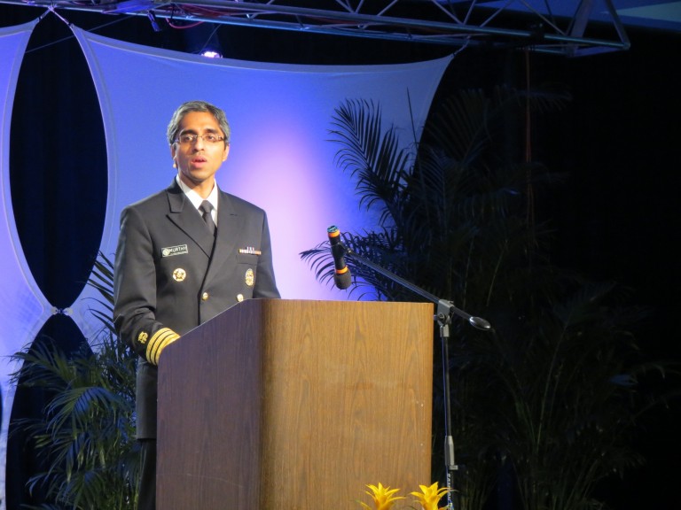 Na primeira noite do encontro, um convidado especial marcou presença e falou aos participantes. O Dr. Vivek Murthy é o Surgeon General dos Estados Unidos, o cargo médico de mais alta autoridade em saúde pública no país, com a tremenda responsabilidade de liderar o Serviço de Saúde Pública. Não há um equivalente direto no Brasil, mas seria algo como um diretor médico geral do Ministério da Saúde, e não o ministro em si, que é um cargo mais político.