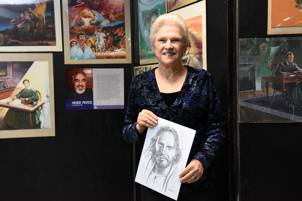 Embora seja difícil classificar entre tantas obras de arte uma que seja a obra-prima de Heber Pintos, Ingrid considera especial o retrato de Jesus publicado na capa da Revista Adventista de julho de 1992. Desenhada a lápis e em preto e branco, a expressão do rosto de Cristo leva à reflexão. “Acho que essa obra foi fruto de um de seus principais momentos de inspiração. De qualquer ângulo, os olhos de Cristo acompanham quem está olhando a imagem. E fico feliz em saber que pessoas tenham sido atraídas a Cristo através das imagens que ele fez”, expressa.