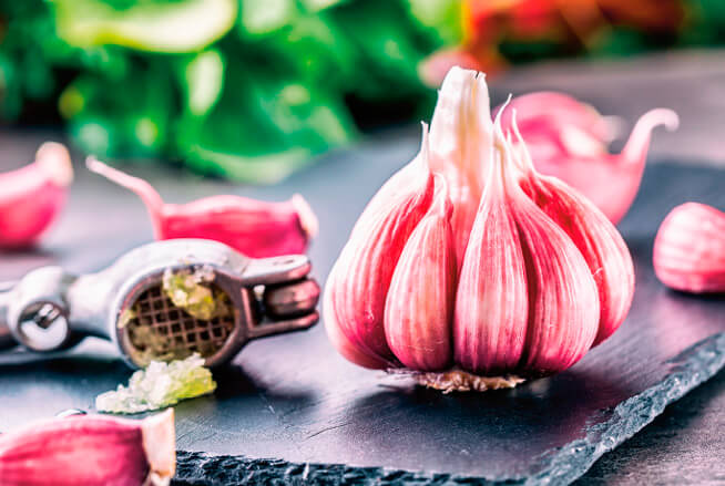 2. Efeito antimicrobiano. Ele é atribuído à alicina, substância responsável pelo cheiro característico do alho e que inibe a proliferação de bactérias e as elimina. Por isso, o alho também é recomendado em casos de tuberculose em que o agente infeccioso desenvolveu resistência. Estudos indicam ainda que o alho combate fungos, protozoários e vírus.