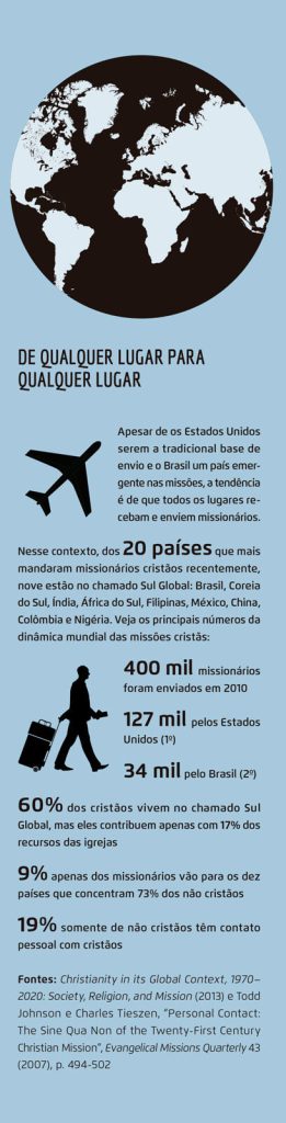 Borba acredita que o envio recente de famílias sul-americanas para alguns dos lugares mais desafiadores do planeta inaugura a quarta fase das missões no Brasil, porque projeta a igreja brasileira e sul-americana como agência de recrutamento e financiamento de missionários internacionais. Esta reportagem pretende mostrar como a partida desses 25 missionários se encaixa no momento histórico que estamos vivendo de mudança de fluxo nas missões mundiais. Ao fim dela, talvez você também esteja vibrando com esse movimento, a ponto de cooperar com orações, ofertas ou a própria vida.