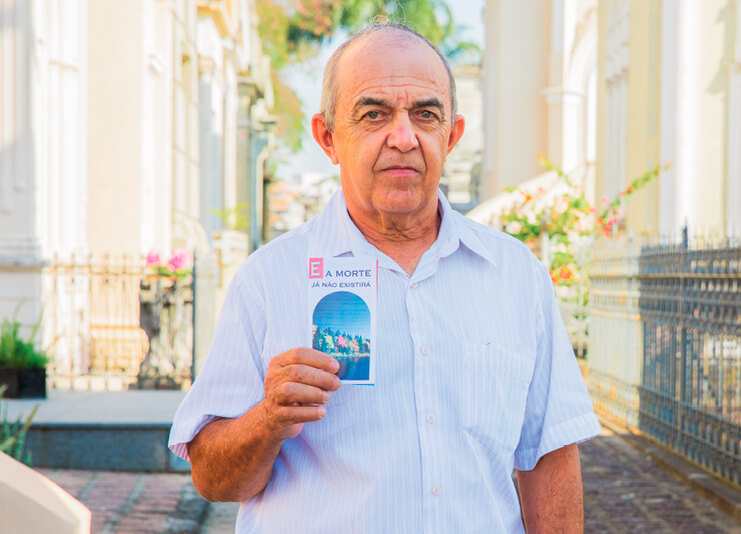 Sempre muito observador, enquanto caminhava naquela manhã nublada, reparou que em quase todos os túmulos havia folhetos. Foi uma rajada de vento que trouxe um impresso desses até ele. Benedito agachou-se, pegou o folheto e notou que falava de uma atitude de esperança diante da morte. Procurou descobrir de qual túmulo aquele exemplar havia “se perdido”, mas não achou; por isso, levou o folheto para casa. “Todos os anos, no Dia de Finados, os adventistas deixavam esses impressos bem cedo no cemitério”, explica.