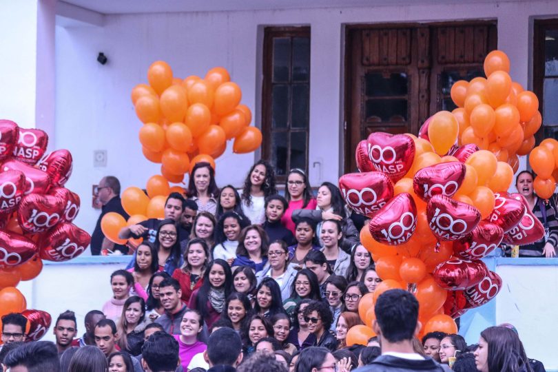 Administradores, professores, alunos, funcionários e membros da comunidade comemoram os 100 anos do Unasp, campus São Paulo, nesta quarta-feira, 6 de maio. A instituição é considerada a maior da área educacional no contexto adventista em nível mundial. Reportagem especial publicada hoje no site da Revista Adventista traz detalhes pitorescos da trajetória da instituição. [Fotos: Rosemeire Braga e Tainá Macedo]